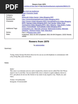 With beautiful writing and a tragic ending Flowers from 1970 has received much praise from the dsmp fandom along with over 6 million reads. Perfect Birthday Gift. The story consists of a tale about George discovering the fact that he can communicate with Dream a boy who lived in his house 50 years before via an old rotary telephone.